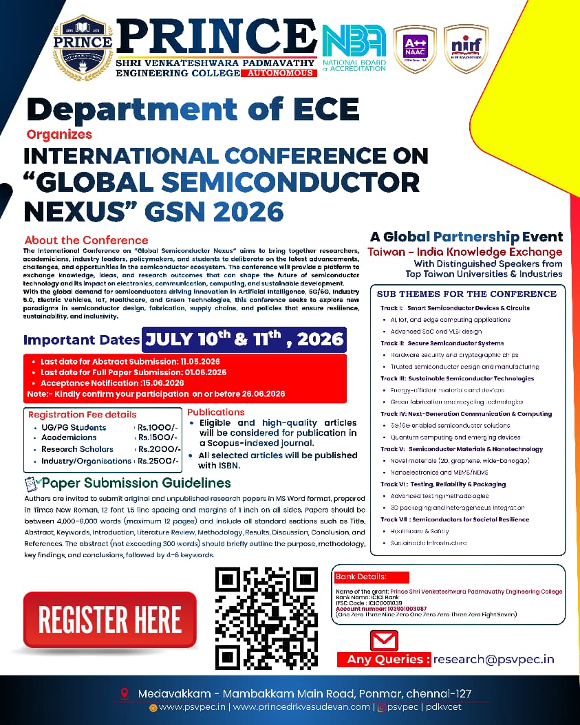 GLOBAL SEMICONDUCTOR NEXUS (GSN 2026) – International Conference in Collaboration with Taiwan | Organized by the ECE Department
